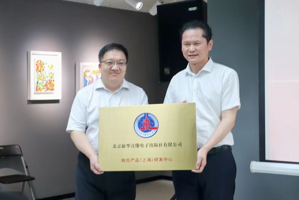 8月15日,新华出版社与上海韵文博鉴信息科技有限公司(以下简称“韵文博鉴”)在上海九点水美术馆签署合作协议,并举行“北京新华音像电子出版社有限公司融合产品(上海)研发中心”授牌仪式。